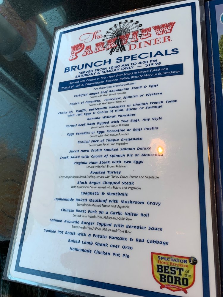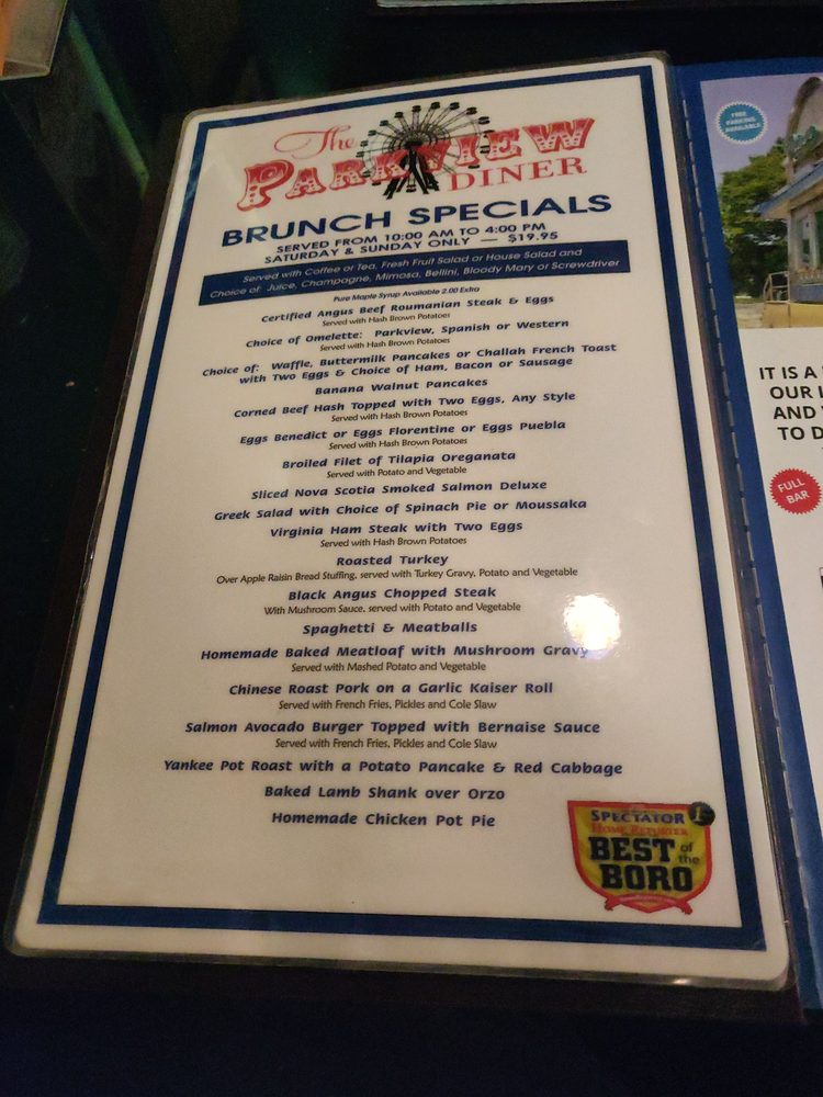 Located in Brooklyn, NY, Parkview Diner is a must-visit destination for delicious desserts and classic diner fare. Offering a wide range of amenities including delivery, reservations, and outdoor seating, this diner caters to every need. Customers rave about the quick service and mouth-watering dishes like French onion soup, chicken Caesar salad, and Philly cheesesteak. The cozy atmosphere and accommodating staff make it the perfect spot for any occasion, whether it's a casual meal or a special celebration like a 50th Wedding Anniversary. With a diverse menu that includes traditional favorites like roast brisket and a decadent Chocolate Peanut Butter Milkshake, Parkview Diner is sure to impress even the most discerning diner aficionados. Don't miss out on this top-rated diner experience near Coney Island.
